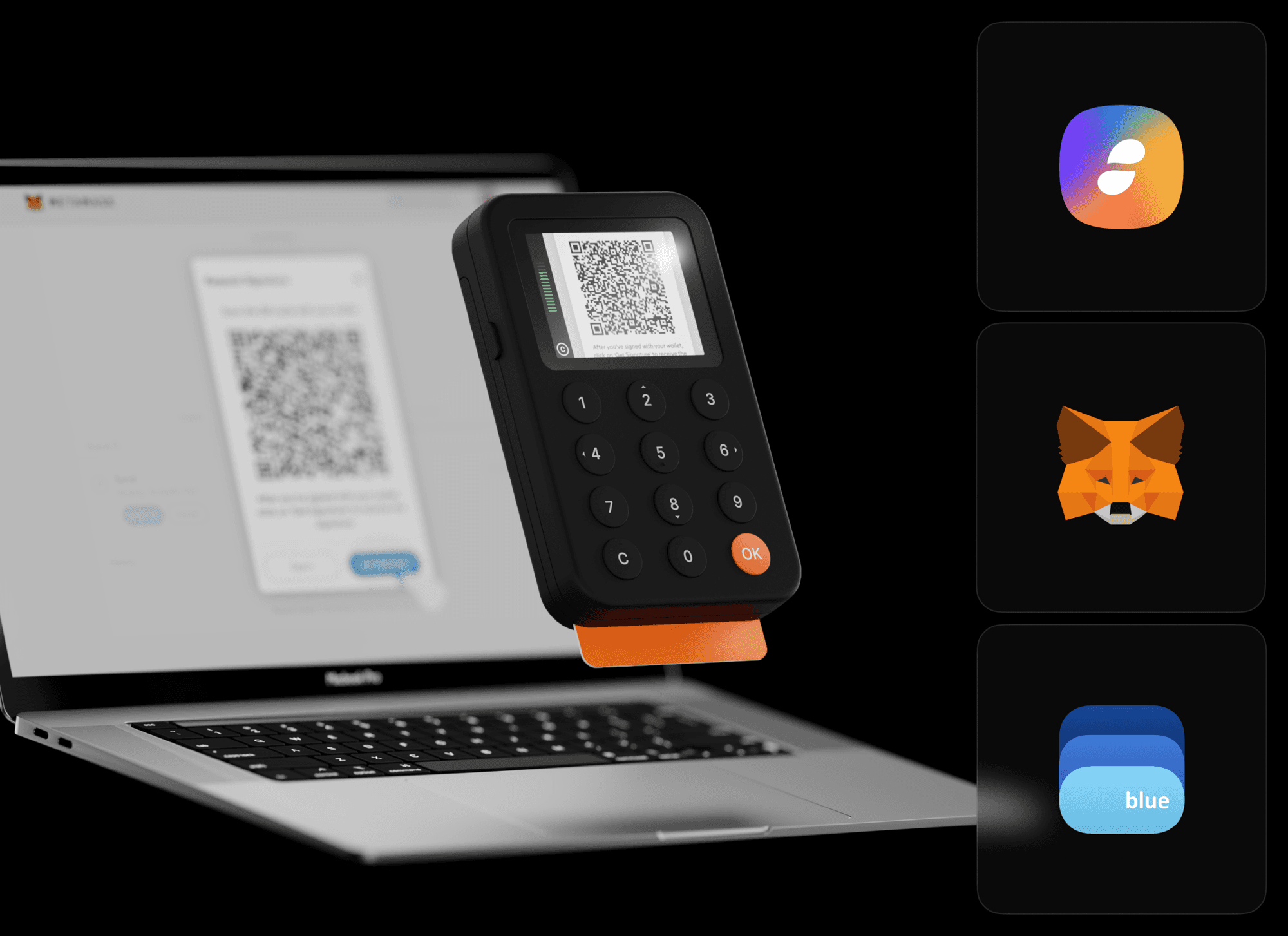 A key priority in the design of Keycard Shell was keeping the device compact and durable. The architecture includes a Cortex-M microcontroller (MCU), an display, a CMOS camera, and a 12-key keyboard. Everything is held together by injection-molded front and back covers. A USB-C port allows for charging and data connectivity, which can be turned off for even greater security.